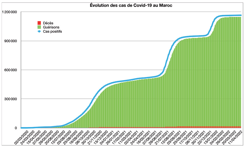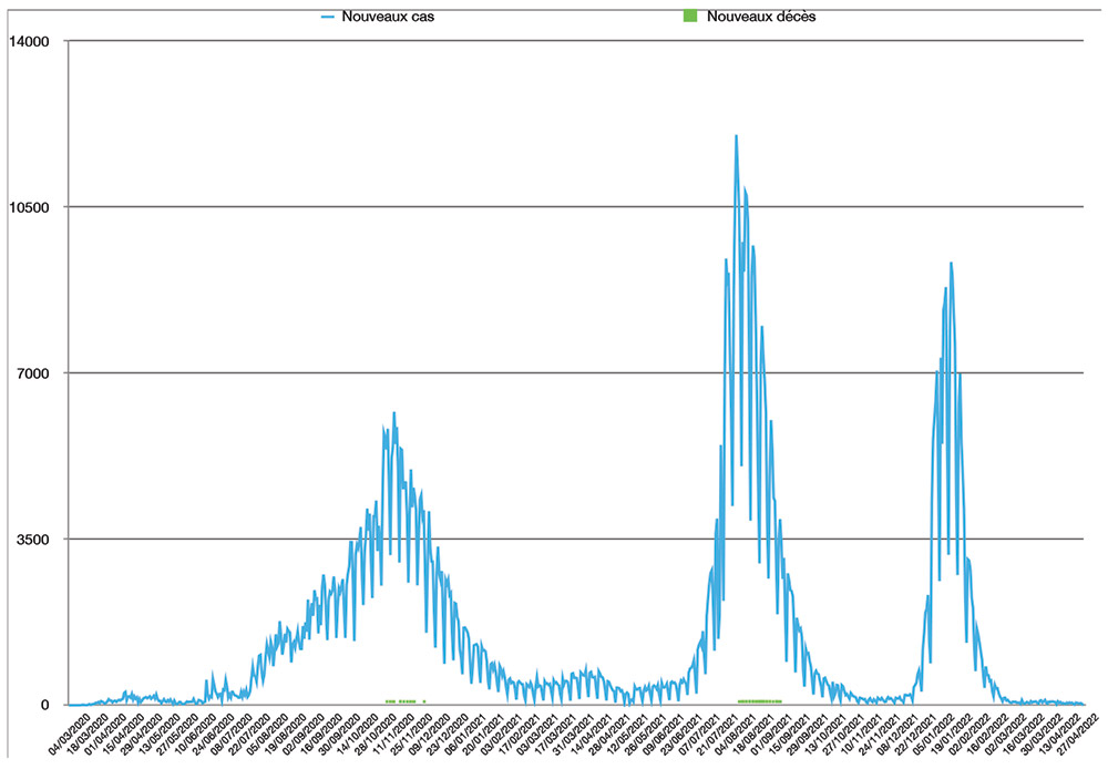 Avec 11 nouveaux cas recensés en 24 heures ce lundi 2 mai, le nombre total de cas de contamination s’élève désormais à 1 164 984, a annoncé le ministère de la Santé. Aucun nouveau décès n’est à déplorer sur les dernières 24 heures, avec un total de décès à 16 069 personnes (taux de létalité stable, à 1,4%). En moyenne, 38 nouveaux cas ont été enregistrés chaque jour lors de la semaine qui vient de s’écouler, soit 6 cas quotidiens de moins que la semaine précédente.