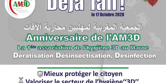 Première association marocaine représentative du métier 3D (Désinfection, Dératisation, Désinsectisation/Déreptilisation), l’AM3D (Association Marocaine des professionnels 3D) a rapidement assumé un rôle d’organe de conseil. À l’occasion de la célébration de sa première année d’existence, l’Association rappelle ses principales réalisations. D’un côté, durant cette année marquée par la crise du Covid-19, …