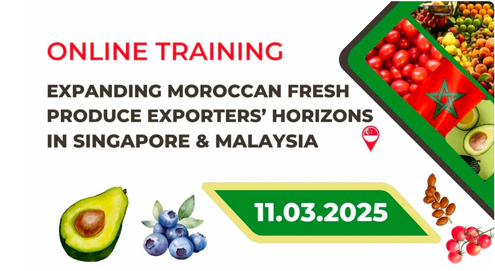 La formation abordera également les opportunités liées à la mission commerciale prévue en avril, qui permettra aux exportateurs de se connecter directement avec des importateurs régionaux. En raison de la forte demande de produits frais de qualité et de la croissance soutenue des économies de Singapour et de Malaisie, cette session est une occasion unique pour les exportateurs marocains de mieux comprendre ces marchés et de saisir les nombreuses opportunités d’exportation disponibles. Le formulaire d’inscription est disponible à travers ce lien : https://docs.google.com/forms/d/e/1FAIpQLSezbD_jZpaWB7okETsMlcHB6IC1n3pIoNeAMD5gHs6Tkawlfg/viewform
