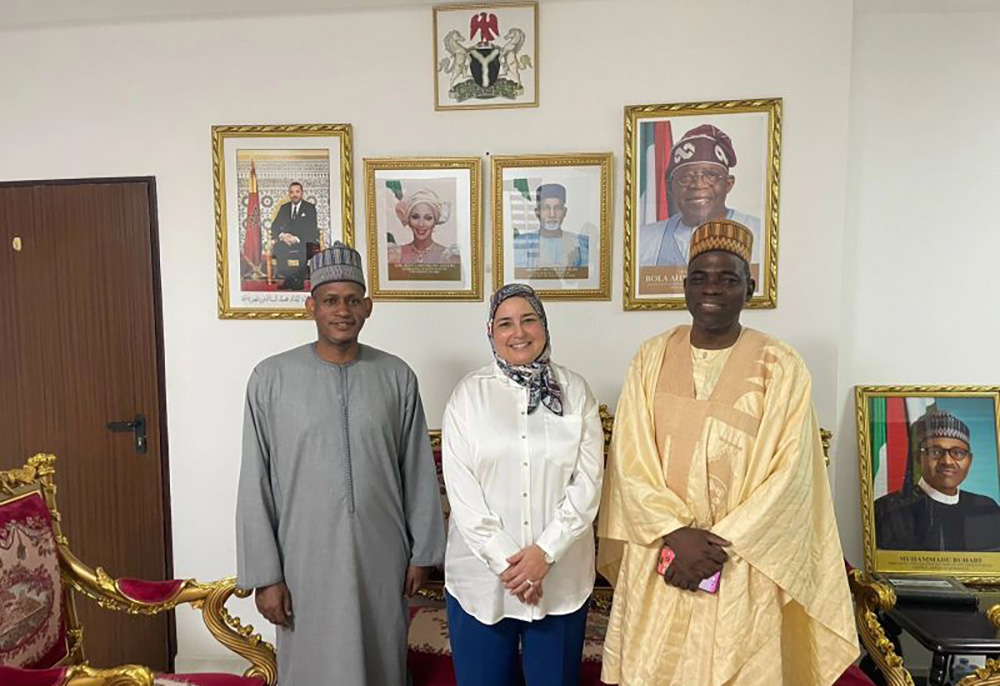 Mme Ghadah AL NOUNO, experte en Stratégie Export et Développement International a représenté la FENAGRI au cours de cet échange avec Son Excellence Adamu Salihu Zanuwa, Chargé d’affaires, et M. Alhassan Khamis Abubakar, Head of Chancelery, autour des perspectives de coopération bilatérale dans le domaine de l’agroalimentaire.