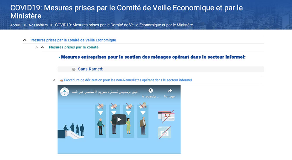 Le Ministère de l’Économie, des Finances et de la Réforme de l’administration vient d’enrichir son site web par une nouvelle rubrique intitulée « Covid-19 : Mesures prises par le Comité de Veille Économique et par le Ministère. »