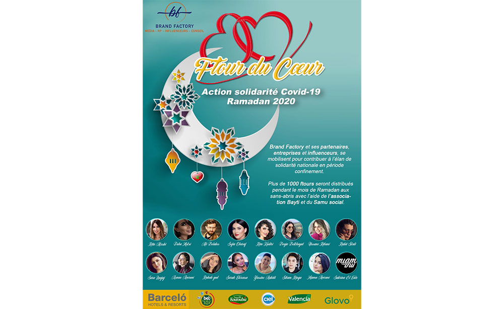 Brand Factory a ainsi sollicité la participation de plusieurs influenceurs de différents secteurs d’activité qui n’ont pas hésité à accompagner cette initiative solidaire inédite intitulée « ftour du cœur ».