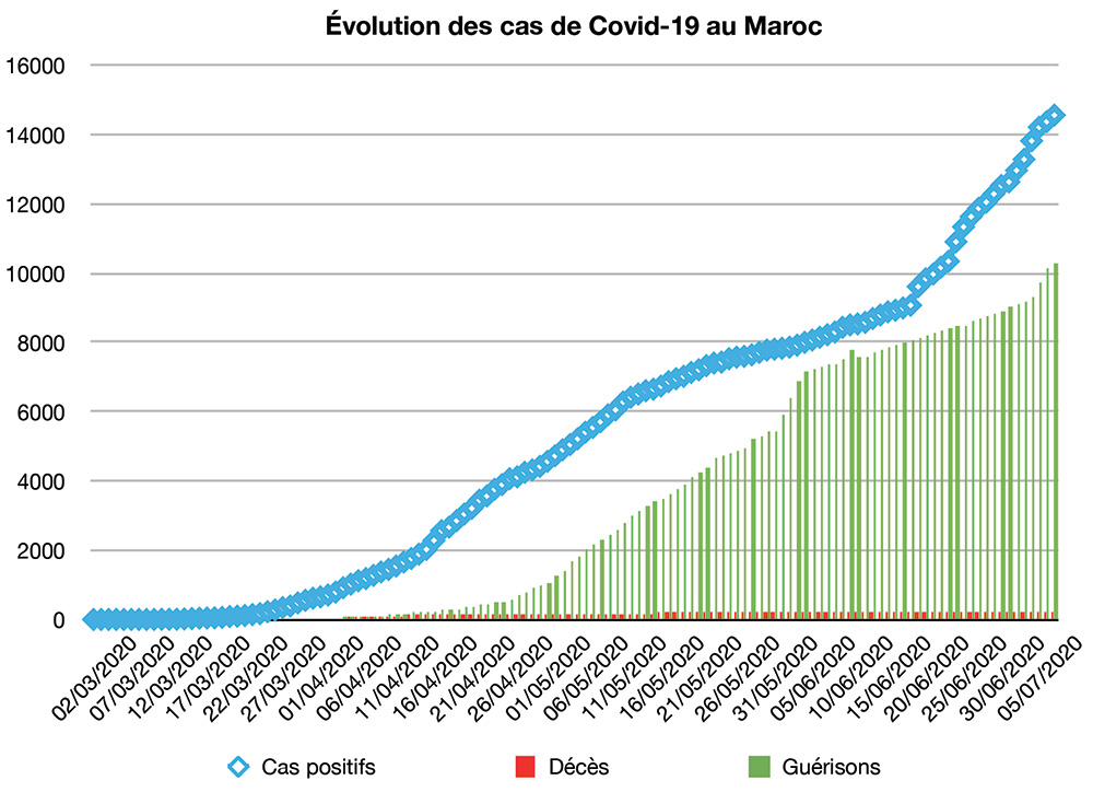 186 cas supplémentaires d’infection au coronavirus ont été confirmés au Maroc ce mardi 7 juillet à 10h, portant à 14.565 le nombre total des cas de contamination, annonce le Ministère de la Santé.