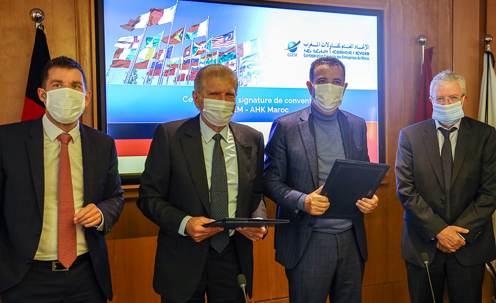 Le 17 décembre, Chakib Alj, Président de la Confédération Générale des Entreprises du Maroc (CGEM), Mazen Sowan, Président de la Chambre Allemande de Commerce et d’Industrie au Maroc (AHK) et Mohamed Amal Guedira, Président du Conseil d’affaires Maroc-Allemagne, ont procédé à la signature d’une convention de coopération en vue de consolider les relations commerciales bilatérales entre le Maroc et l’Allemagne et de renforcer les liens économico-diplomatiques, en cohérence avec les initiatives gouvernementales récentes.