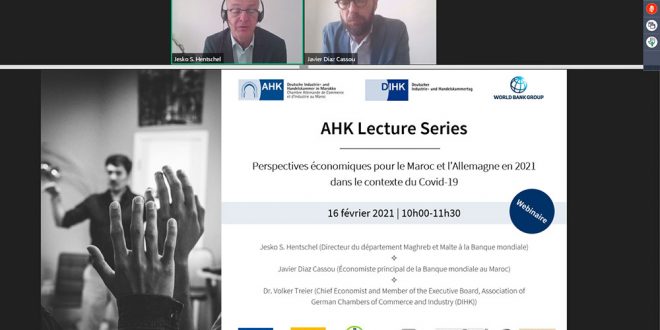 Le 16 février 2021, l’AHK, Chambre Allemande de Commerce et d’Industrie au Maroc, a organisé le premier webinaire de sa nouvelle série d’évènements nommée « AHK Lecture Series ». L’objectif de cette conférence était d’apprécier, en compagnie d’experts de la Banque mondiale et de la Fédération des chambres de Commerce et d’Industrie Allemandes (DIHK), les développements actuels au Maroc et en Allemagne et de s’informer sur les perspectives économiques pour ces deux pays en 2021 dans le contexte du Covid-19.