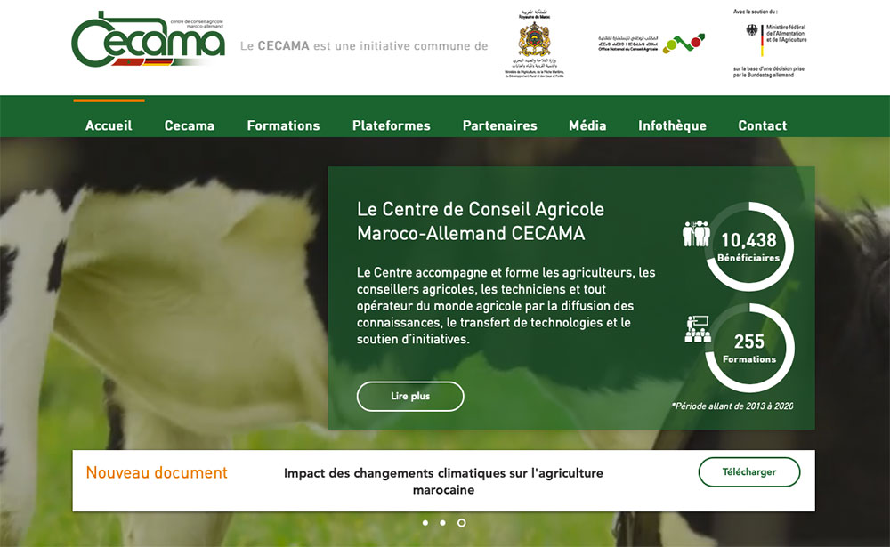 Le CECAMA (Centre de conseil agricole maroco-allemand) vient d’annoncer le lancement de son site web revisité. L’espace www.cecama.ma fait ainsi peau neuve puisqu’il a été totalement repensé avec un design intuitif et des rubriques enrichies.