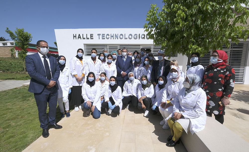 La nouvelle Halle technologique agroalimentaire, d’une superficie couverte de 452 m2, est munie de matériel de transformation des produits agroalimentaires et de laboratoires. Sa mise en place, fruit d’un investissement global de 11 millions de dirhams, s’inscrit dans la vision globale pour la formation d’une nouvelle génération de jeunes entrepreneurs agricoles à l’horizon 2030 dans le cadre de la nouvelle stratégie agricole Génération Green, et permettra ainsi, d’améliorer la qualité de la formation, de doter les stagiaires de capacités professionnelles dans les domaines de la transformation et la valorisation des produits d’origine animale et végétale, de procéder à l’échange d’expériences avec les institutions de formation agricole et de l’enseignement supérieur et de mettre en place de partenariats gagnant-gagnant avec les unités industrielles.
