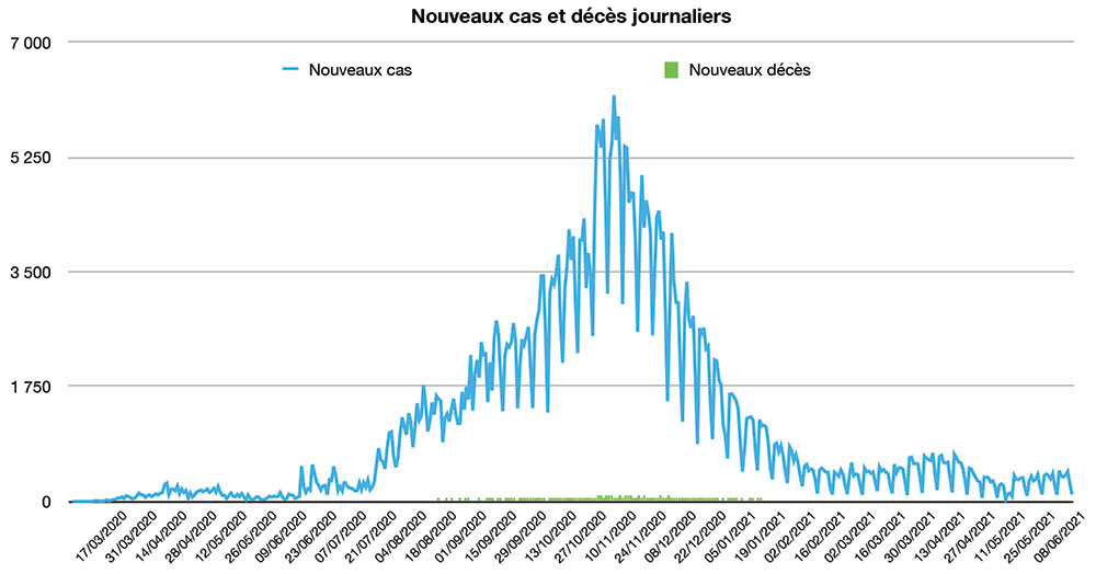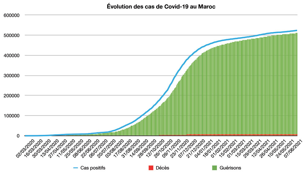 Avec seulement 109 nouveaux cas recensés en 24 heures ce lundi 14 juin à 16h, le nombre total de cas de contamination s’élève désormais à 523.999, a annoncé le Ministère de la Santé. Deux nouveaux décès sont à déplorer sur les dernières 24 heures, portant le total à 9.213 personnes (taux de létalité stable à 1,8%). En moyenne, 353 nouveaux cas ont été enregistrés chaque jour lors de la semaine qui vient de s’écouler, soit 22 cas quotidien de plus que la semaine précédente.