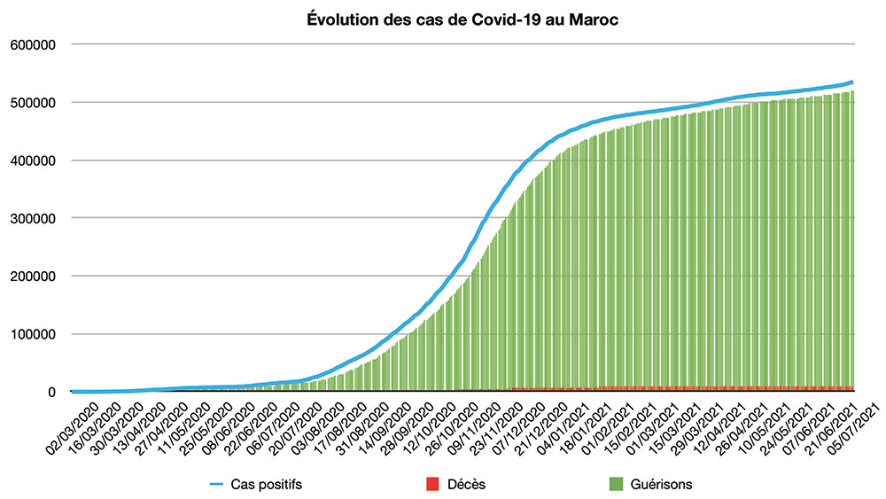 Le 5 juillet, 10,12 millions de personnes avaient bénéficié du programme de vaccination au Maroc. Par ailleurs, 9,18 millions de personnes ont déjà reçu la 2ème dose.