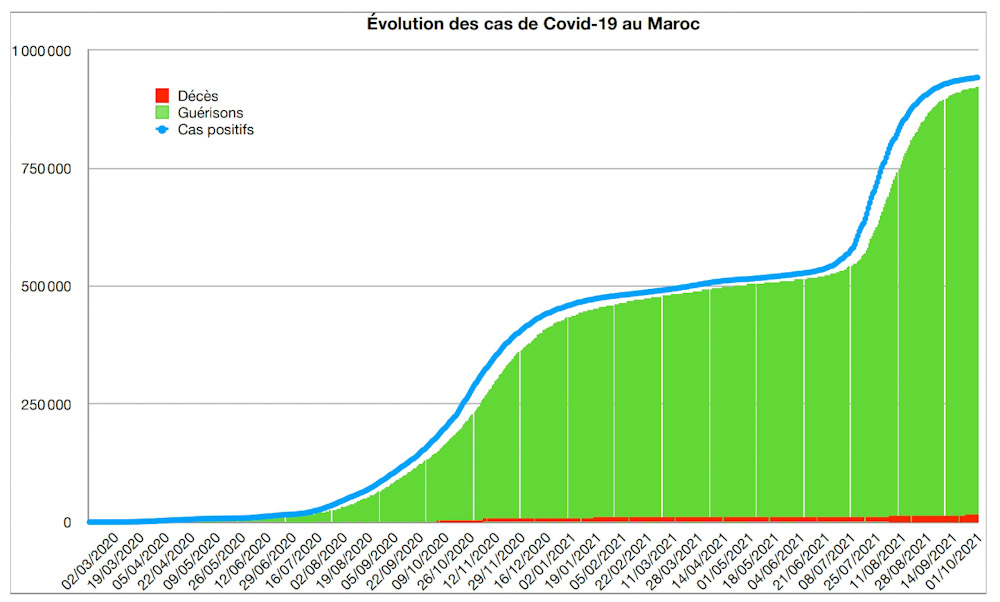 Avec 269 nouveaux cas recensés en 24 heures ce dimanche 17 octobre à 16h, le nombre total de cas de contamination s’élève désormais à 942 132, a annoncé le Ministère de la Santé. Sept nouveaux décès sont à déplorer sur les dernières 24 heures, portant le total à 14 544 personnes (taux de létalité stable à 1,5%). En moyenne, 463 nouveaux cas ont été enregistrés chaque jour lors de la semaine qui vient de s’écouler, soit 80 cas quotidiens de moins que la semaine précédente.