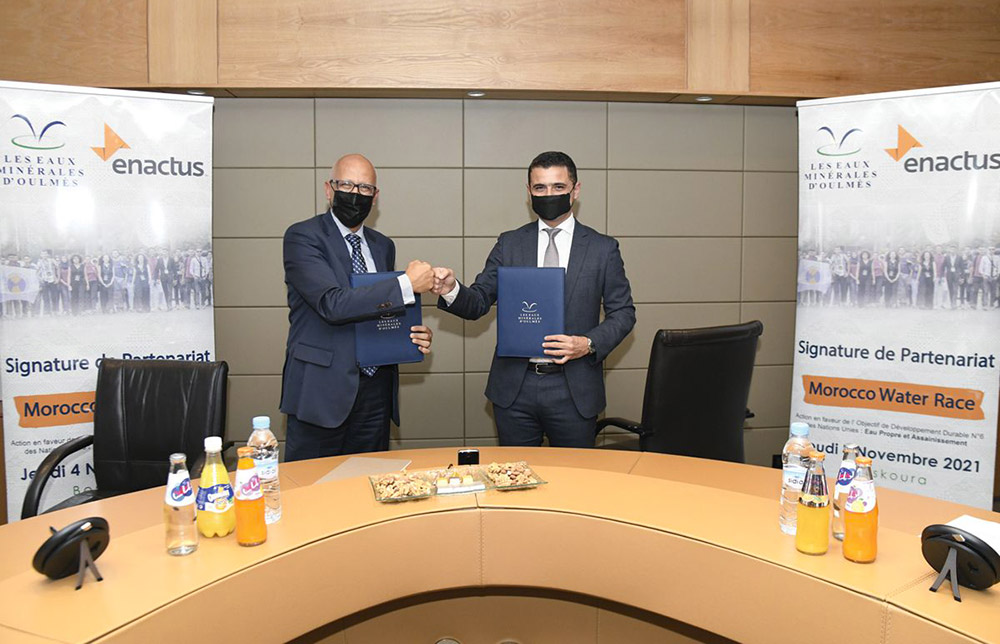 Le 4 novembre 2021 à Bouskoura, Les Eaux Minérales d’Oulmès et Enactus Morocco ont signé un partenariat inédit et lancé la première édition de Morocco Water Race. Cette opération est une action directe en réponse à l’Objectif de Développement Durable n°6 établi par les Nations Unies – Eau Propre et Assainissement – dans le cadre de sa vision à l’horizon 2030. Bien que des avancées majeures aient été réalisées au Maroc dans le domaine de l’accès à l’eau potable auprès des populations rurales et urbaines du pays, la pandémie Covid-19 a démontré l’importance cruciale de l’hygiène et d’un approvisionnement adéquat en eau, afin de prévenir et de contrôler les maladies et la sécurité sanitaire des populations vulnérables.