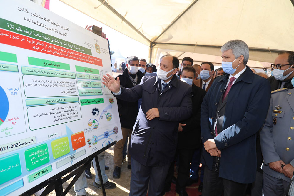Afin de procéder au lancement de projets au niveau de la commune territoriale Gzenaya sud, cercle d’Aknoul, dans le cadre du lancement du programme de plantation, Mohammed Sadiki, ministre de l’Agriculture, de la pêche maritime, du développement rural et des eaux et forêts s’est rendu le 10 décembre 2021 dans la province de Taza, au niveau des sites de ces projets.