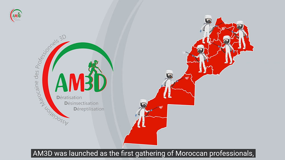 L’Association professionnelle des acteurs spécialistes de la lutte anti-nuisibles au Maroc (AM3D) vient de publier sur l’ensemble de ses réseaux sociaux une vidéo-animation destinée à faciliter la compréhension du métier 3D au plus grand nombre.