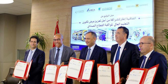 Signée par le ministre de l’Industrie et du commerce, Ryad Mezzour, le ministre de l’Enseignement supérieur, de la recherche scientifique et de l’innovation, Abdellatif Miraoui, le président de la Confédération générale des entreprises du Maroc (CGEM), Chakib Alj, ainsi que par le président de l’Association marocaine pour l’industrie et la construction automobile (AMICA), Abdelmoumen Hakim, et le président du groupement des industries marocaines aéronautiques et spatiales (GIMAS), Karim Cheikh, cette convention a pour objectif de mettre le partenariat public-privé au service d’une formation adaptée au besoin croissant et de plus en plus pointu des industriels en compétences spécialisées. Elle vise aussi l’intégration progressive de modules de formation sur les soft skills, la production durable/décarbonée et l’industrie 4.0, mais aussi l’implication des industriels dans l’amélioration de l’offre de formation des universités, notamment, pour les secteurs automobile et aéronautique.