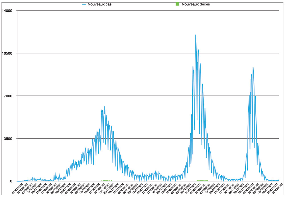 Avec 35 nouveaux cas recensés en 24 heures ce lundi 24 avril, le nombre total de cas de contamination s’élève désormais à 1 163 561, a annoncé le ministère de la Santé. Aucun nouveau décès est à déplorer sur les dernières 24 heures, avec un total de décès à 16 060 personnes inchangé depuis le 31 mars (taux de létalité stable, à 1,4%). En moyenne, 78 nouveaux cas ont été enregistrés chaque jour lors de la semaine qui vient de s’écouler, soit 11 cas quotidiens de plus que la semaine précédente.