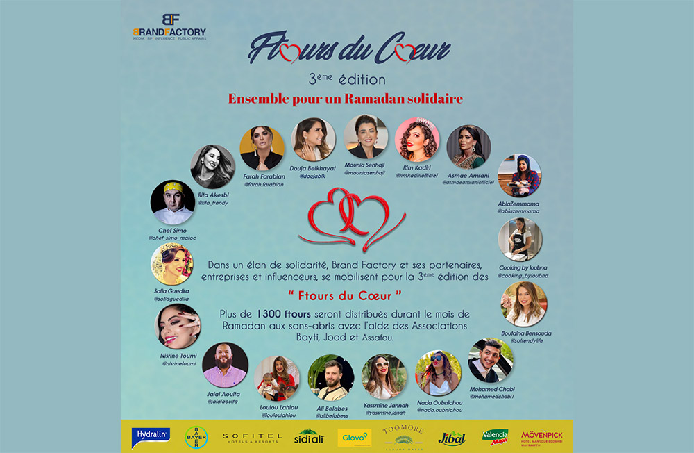L’opération consiste à préparer des packs « ftours du cœur ». Les hôtels Sofitel et Mövenpick mettent à disposition leurs cuisines sous la houlette de leurs chefs qui prépareront les repas. Sidi Ali, Valencia, les fromageries Bel et Toomore contribuent par des dons en nature, et le spécialiste de la livraison Glovo assure la distribution dans les villes de Casablanca, Rabat et Marrakech. Les influenceurs se sont engagés à mettre la main à la pâte en préparant et emballant les packs-ftours et ce, chaque jour jusqu’à la fin du mois sacré. Les packs sont composés de toutes les denrées qui constituent un repas sain et équilibré (repas chaud, pain, lait, datte, jus, eau minérale…). Au total, plus de 1 300 ftours seront distribués durant ce mois.