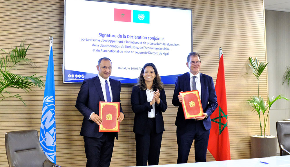 Cette Déclaration vise également à appuyer la stratégie marocaine de lutte contre les changements climatiques par l’élaboration du plan national de mise en œuvre de l’accord de Kigali prévoyant l’abandon progressif des gaz de type hydrofluorocarbones (HFC), dans le secteur industriel. Elle porte, aussi, sur le soutien du Ministère de l’Industrie et du Commerce dans l’élaboration d’une Plateforme d’analyse industrielle (IAP), à travers notamment la création de centres d’excellence intégrés au niveau national et régional. Et ce, afin d’identifier et de mettre en œuvre des projets d’innovation numérique et des programmes de renforcement des capacités dans les domaines de la décarbonation industrielle, du transfert de technologie et de la production numérique avancée, du commerce international et de l’investissement.