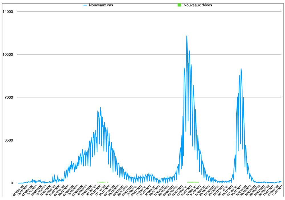 Avec 88 nouveaux cas recensés en 24 heures ce lundi 23 mai, le nombre total de cas de contamination s’élève désormais à 1 166 716, a annoncé le ministère de la Santé. Aucun nouveau décès n’est à déplorer sur les dernières 24 heures, avec un total de décès à 16 075 personnes (taux de létalité stable, à 1,4%). En moyenne, 124 nouveaux cas ont été enregistrés chaque jour lors de la semaine qui vient de s’écouler, soit 43 cas quotidiens de plus que la semaine précédente.