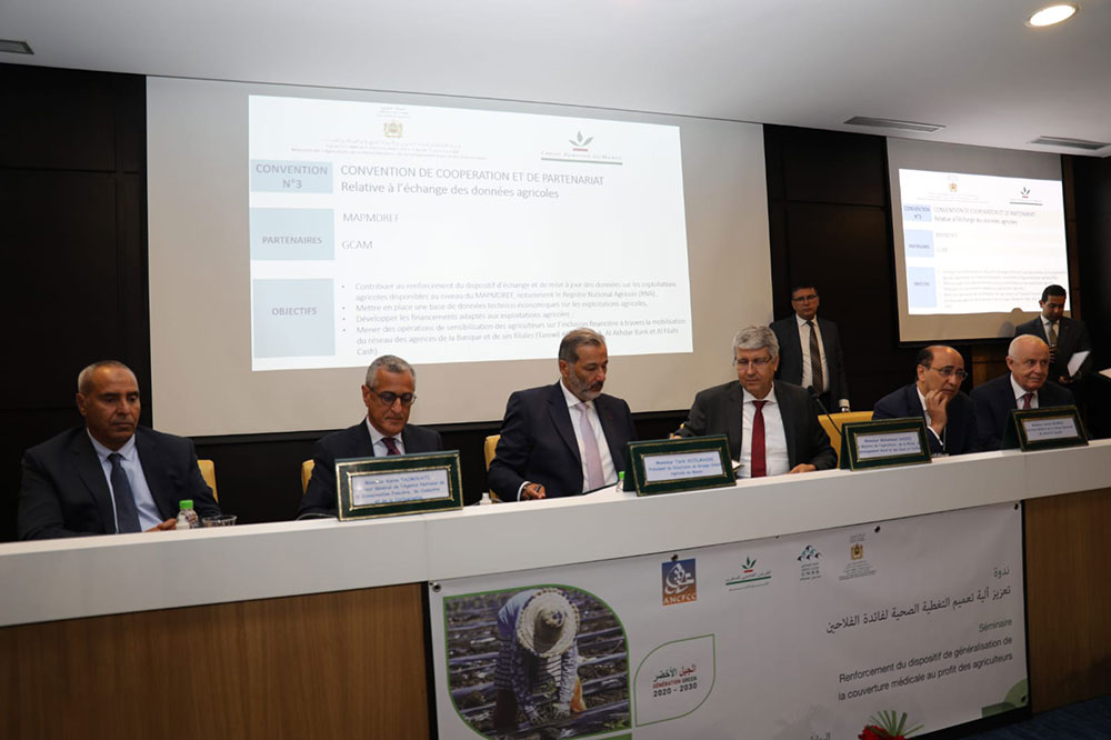 - une convention de partenariat entre le MAPMDREF, la CNSS et le CAM, qui porte sur le renforcement du dispositif de généralisation de la couverture médicale au profit des agriculteurs ;