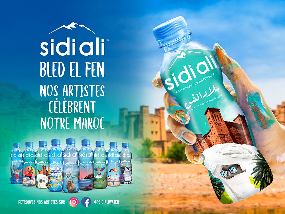 Afin de mettre en avant le talent des jeunes artistes marocains et rendre hommage à la beauté du Maroc, Sidi Ali, marque de référence d’eau minérale au Maroc, lance une édition limitée de neuf bouteilles de 33 cl, nommée « Bled El Fen »
