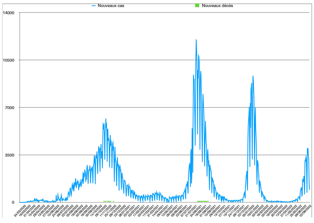 Le nombre total de cas sévères ou critiques augmente également, atteignant 169, soit 40 de plus plus que lundi dernier, dont 8 personnes sous intubation. Le taux d’occupation des lits de réanimation dédiés au Covid est en hausse, à 3,2 %.