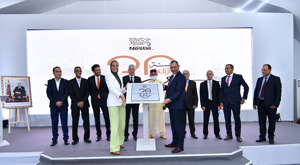 À l’occasion des 30 ans de son usine à El Jadida, Nestlé Maroc a organisé le 1er juillet 2022 un évènement qui a vu la présence du Ministre de l’Industrie et du commerce, Ryad Mezzour, du gouverneur de la province, Mohammed El Guerrouj, de l’Ambassadeur de Suisse au Maroc, Guillaume Scheurer, ainsi que la directrice générale de Nestlé Maroc, Imane Zaoui.