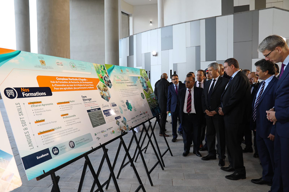 Cet évènement a permis de présenter la vision stratégique et les projets structurants du complexe horticole d’Agadir, notamment, le centre d’excellence horticole, l’incubateur et la station expérimentale ; l’occasion également de présenter des projets de start-up, de business modèles d’incubateurs et de modèles d’alliances stratégiques. L’incubateur nommé « Hub d’innovation d’Agadir » est une entité d’aide et d’accompagnement à la création d’entreprises dans le domaine de l’agro-technologie, de l’eau et de la durabilité. Il vise à promouvoir des entreprises agricoles innovantes pour une agriculture résiliente et éco-efficiente.