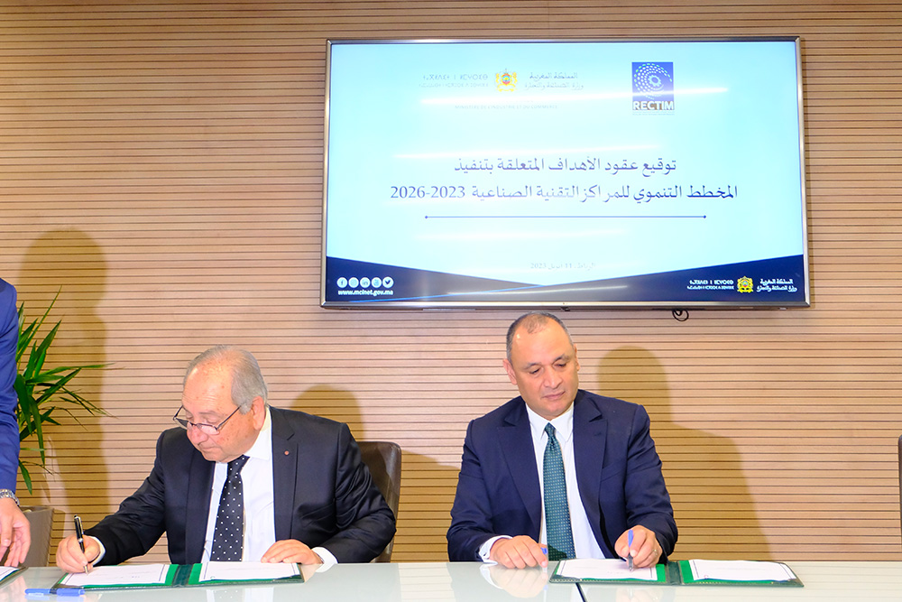 Ryad Mezzour, le ministre de l’Industrie et du Commerce, a présidé la cérémonie de signature des contrats-objectifs des Centres techniques industriels (CTI) le 11 avril 2023, en présence des présidents des fédérations et des associations professionnelles et des présidents des Centres Techniques. Les nombreux contrats-objectifs signés, s’inscrivent dans le cadre de la convention-cadre relative à la mise en œuvre du plan de développement des CTI 2023-2026. L’objectif de ce plan est de renforcer la capacité de ces centres techniques et technologiques au service des entreprises industrielles.